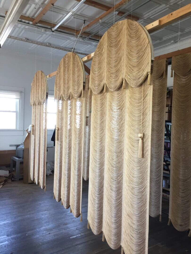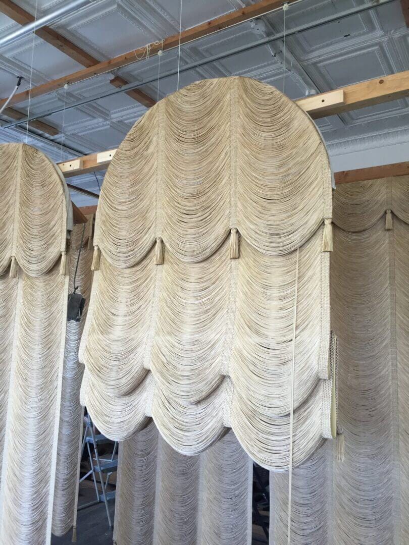 The Austrian String Shade has been around since 18th Century Vienna and it’s still a favorite today. This timeless shade design was introduced hundreds of years ago in Europe, and View Tech has updated it for the modern world by using hand-loomed soft, smooth swags of strings in all colors and sizes. The combination of soft strings forming festoons at the bottom in concert with thin vertical stripes woven between them makes for a stunning statement in window treatments. View Tech is still looming these beautiful Austrian Shades, created with care by our expert artisans.